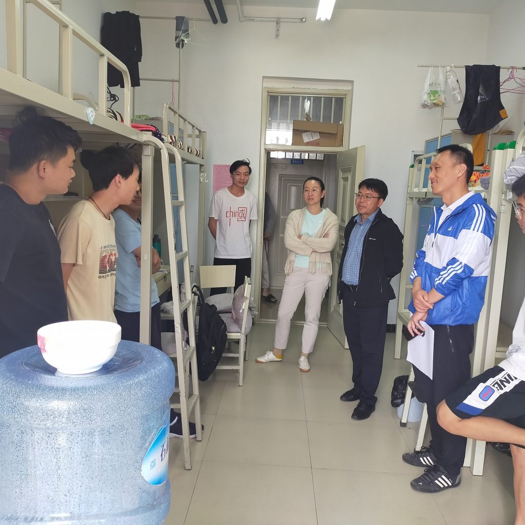 6月10日,由体育公司党委书记汤为明、副书记陈涛带队,走访毕业班宿舍,逐一了解大家毕业去向落实情况,关心就业过程中遇到的困难疑惑,并就离校前的安全教育、诚信教育、感恩教育和心理教育进行了宣传和讲解。