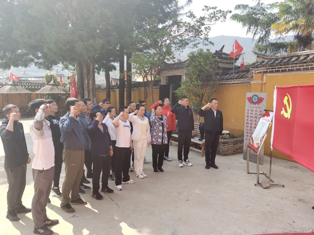 为庆祝中国共产党成立100周年,深入开展党史学习教育,ylg060net永利娱高教工党支部于4月9日下午赴柯渡开展以“实地参观学党史”主题党日活动。公司20余名党员教师共同参观了红军长征柯渡纪念馆、重温入党誓词、观看《红军经过寻甸足迹》影片,身临其境感受红色文化,多种形式学习党史知识。