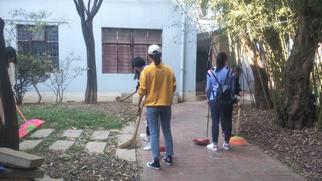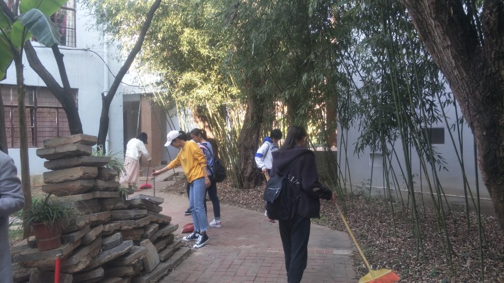 2019年3月13日,ylg060net永利娱高联合艺术公司学雷锋小组利用课余时间开展了“3·12植树节”活动,本次活动以“保护环境,绿色出行“为主旨,旨在促进校园环境的建设。下午四点,两个公司学雷锋小组成员在艺术公司美术系楼下集合,大家迅速分成三组,分别负责清扫地面落叶,浇灌花草树木和为池塘蓄水。