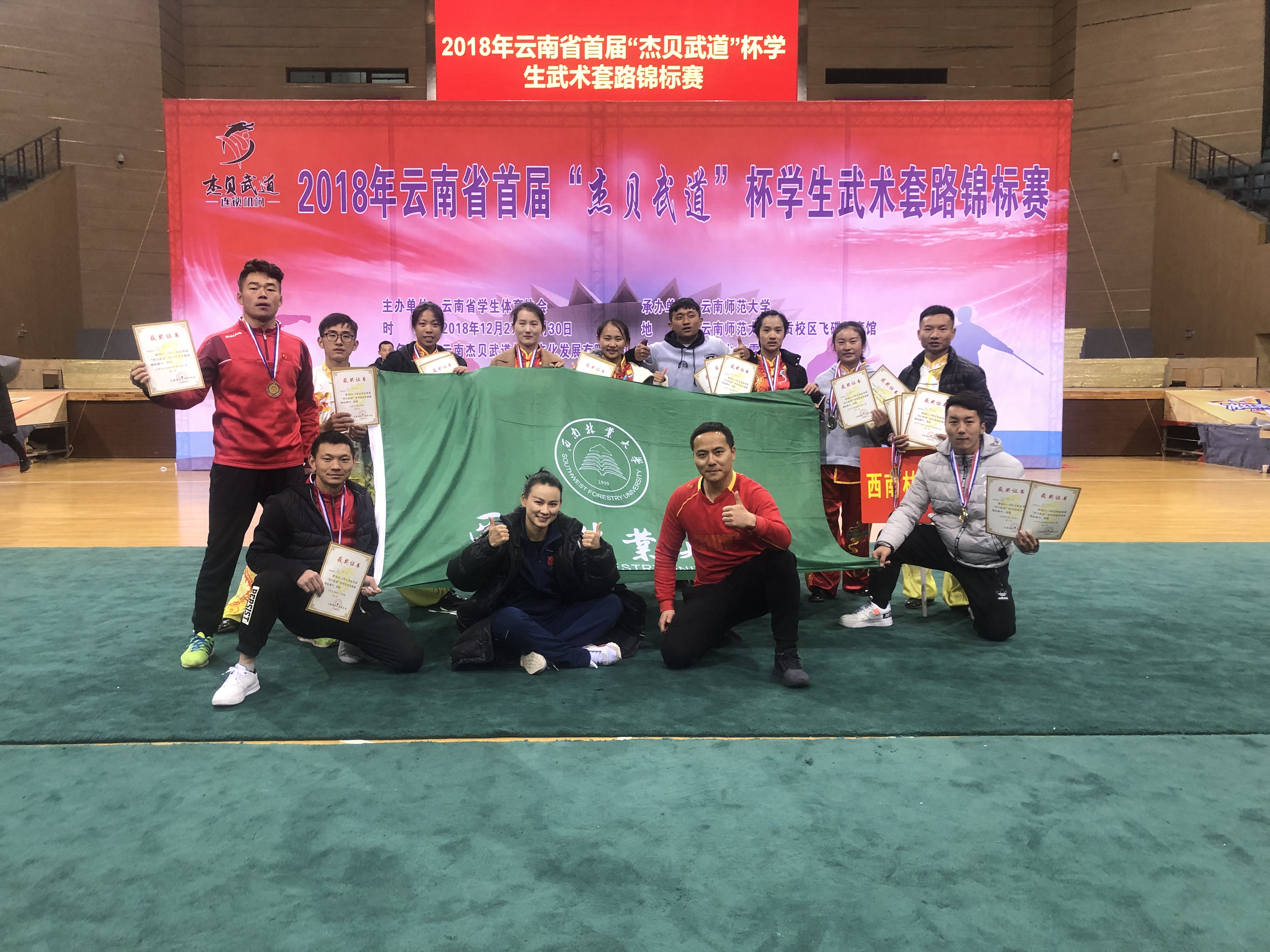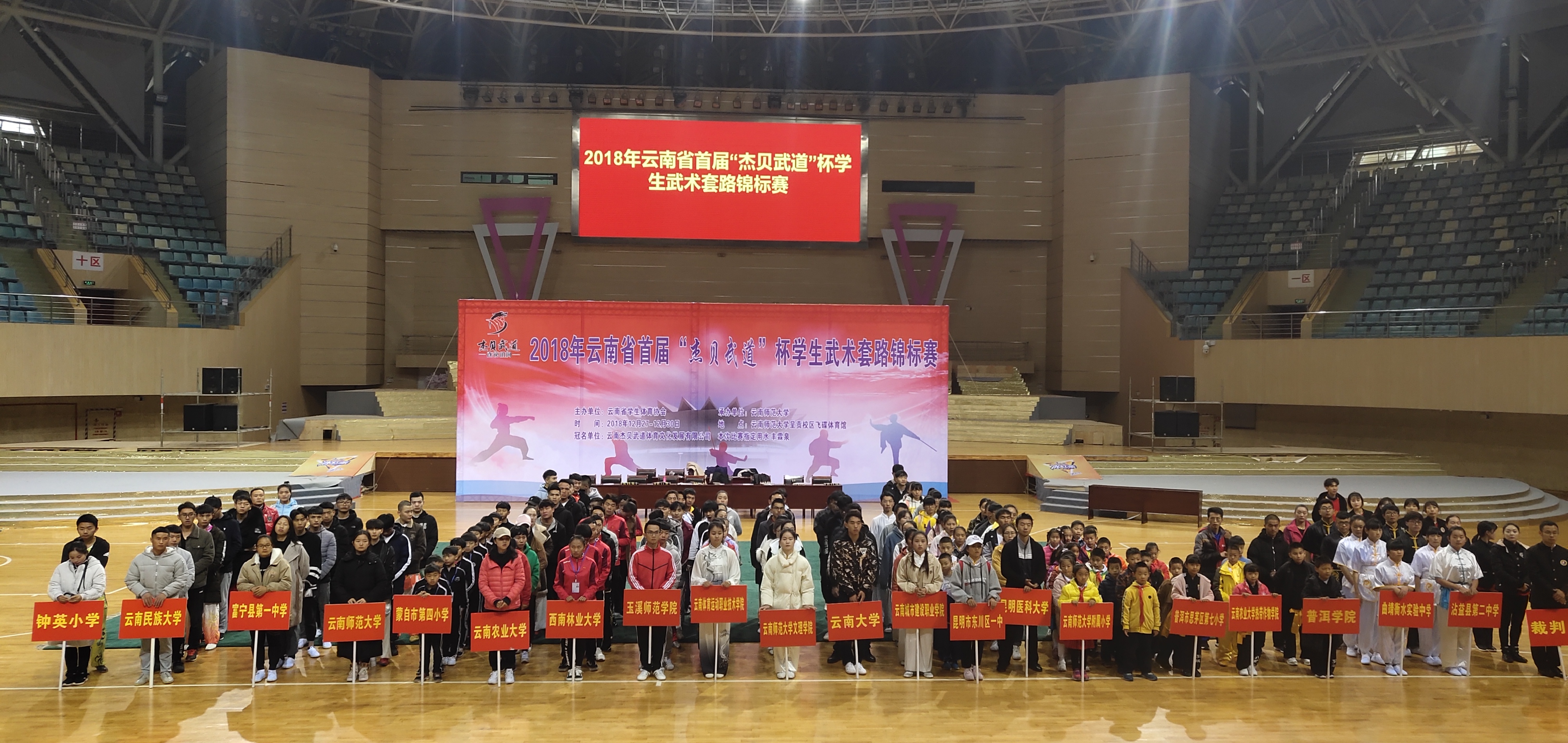 云南省第一届员工武术锦标赛,于2018年12月27日至30日在呈贡师大飞碟体育馆举行。首届举办的老员工武术比赛吸引了来自ylg永利、云南大学、云南师范大学、云南民族大学、云南农业大学、云南体育运动职业技术公司等省内各地13所高校参加,ylg060net永利娱高由领队韦群杰老师,教练段静、关鹏、张洁莹三位老师组成,派出公司本科生7男6女共13名同学参加本次比赛28个单项1项集体项目的角逐。