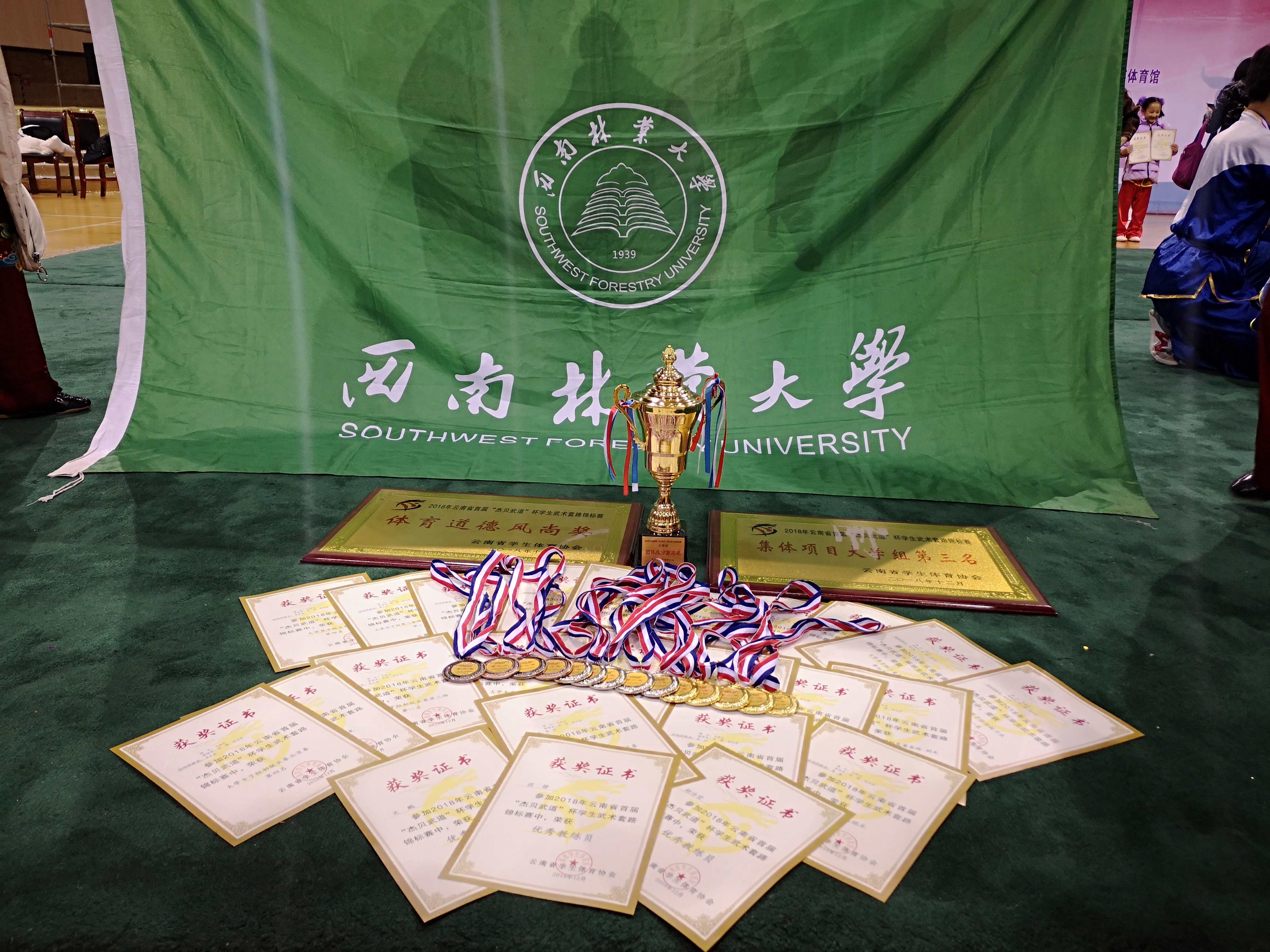 本次比赛是公司武术代表队2018年入校以来的第二次征战,他们积极备战、苦练本领,他们秉着“展现西林风采、弘扬西林精神,赛出林大的气势,比出武术人的血性”及“狭路相逢勇者胜,勇者相逢智者胜”的尚武精神,始终坚持“能打、会练、会养”的武术专业定位,高喊着“耀我西林、扬我国术”的铿锵口号。经过三天激烈的角逐,公司斩获个人单项5金5银4铜,四至八名6个,集体项目第三名,团体总分第三名的优异成绩,并荣获赛会集体道德风尚奖。成绩背后,离不开公司、公司领导的关心支持、教练团队的通力合作、同学们的刻苦努力,裁判员的公正执裁。