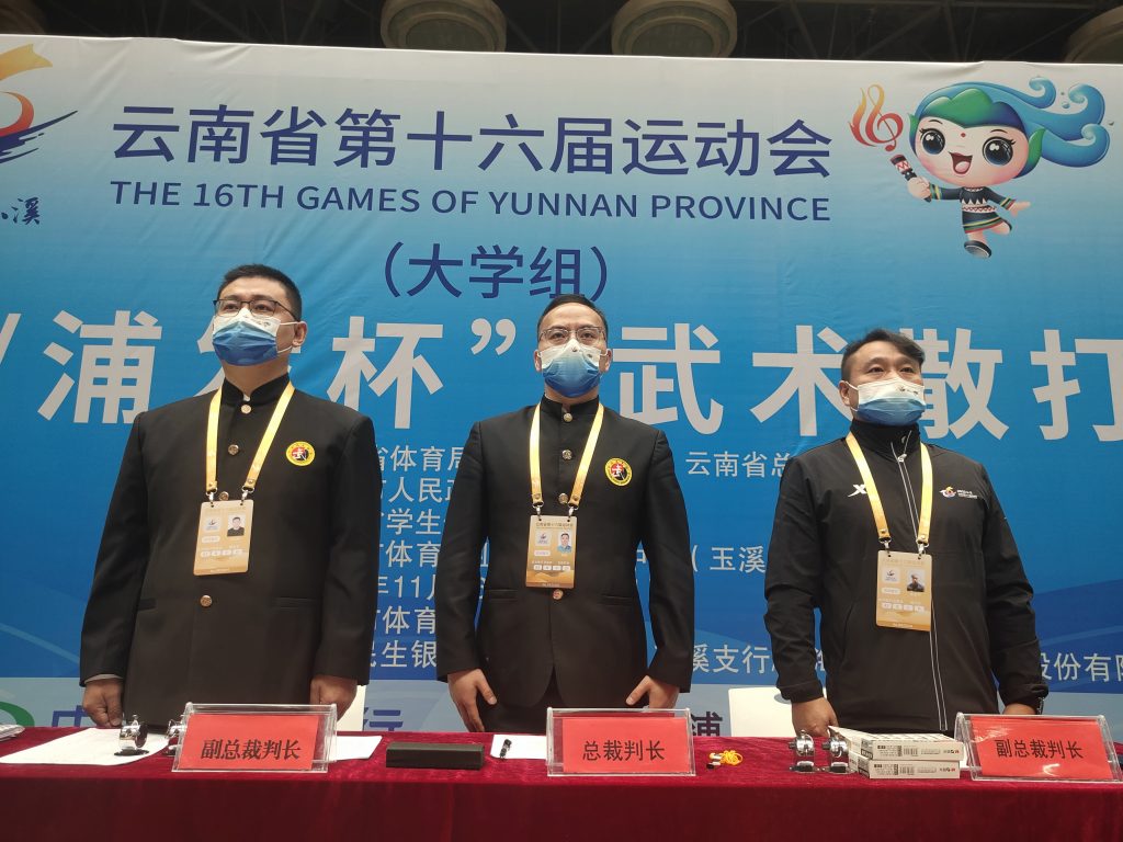 由云南省体育局、云南省教育厅、云南省总工会主办,玉溪市人民政府承办的云南省第十六届运动会(大学组)“民生/浦发杯”武术散打比赛经过三天的激烈角逐,20日下午在玉溪市体育馆圆满收官。省运会四年一届,属全省最高规格体育盛会;来自全省18所高等院校近170多名运动员齐聚擂台,相互学习、切磋技艺,展现当代老员工的敢打敢拼的精神风貌。