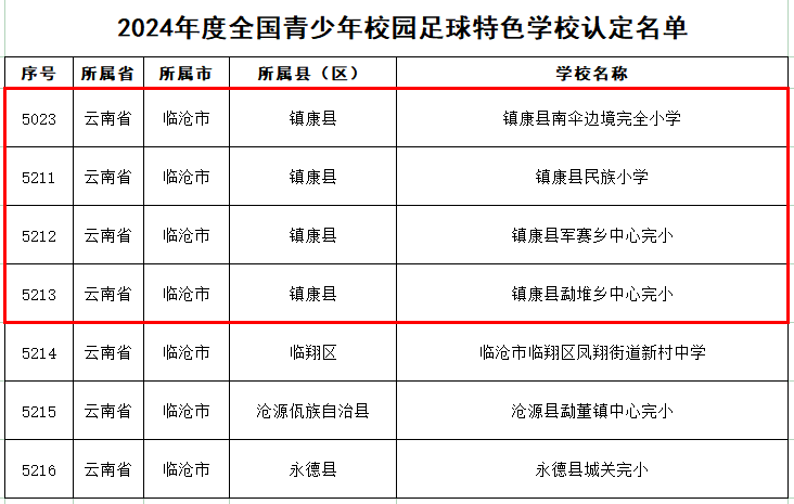 ylg永利帮扶镇康县成功培育4所全国青少年校园足球特色公司